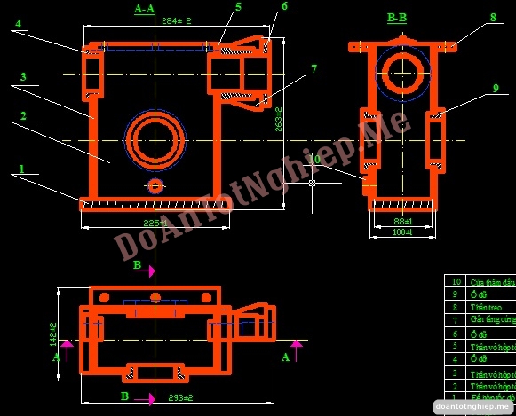 Chi tiết số 2 được lắng ghép với chi tiết số 1,3,5 bằng mối hàn góc và mối ghép chữ T với chi tiết số 8 với chi tiết số 9 bằng mối hàn góc chu vi khép kín.
